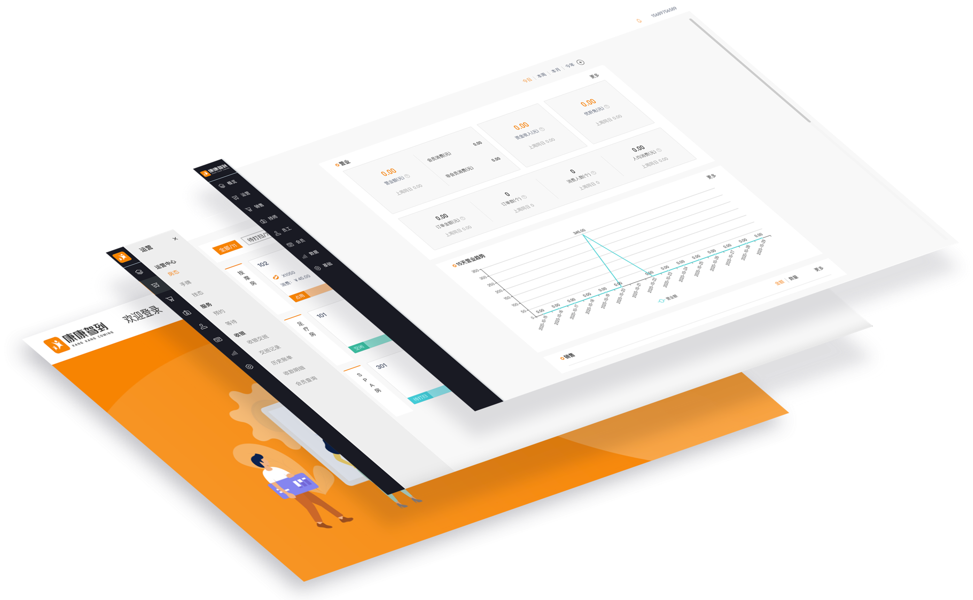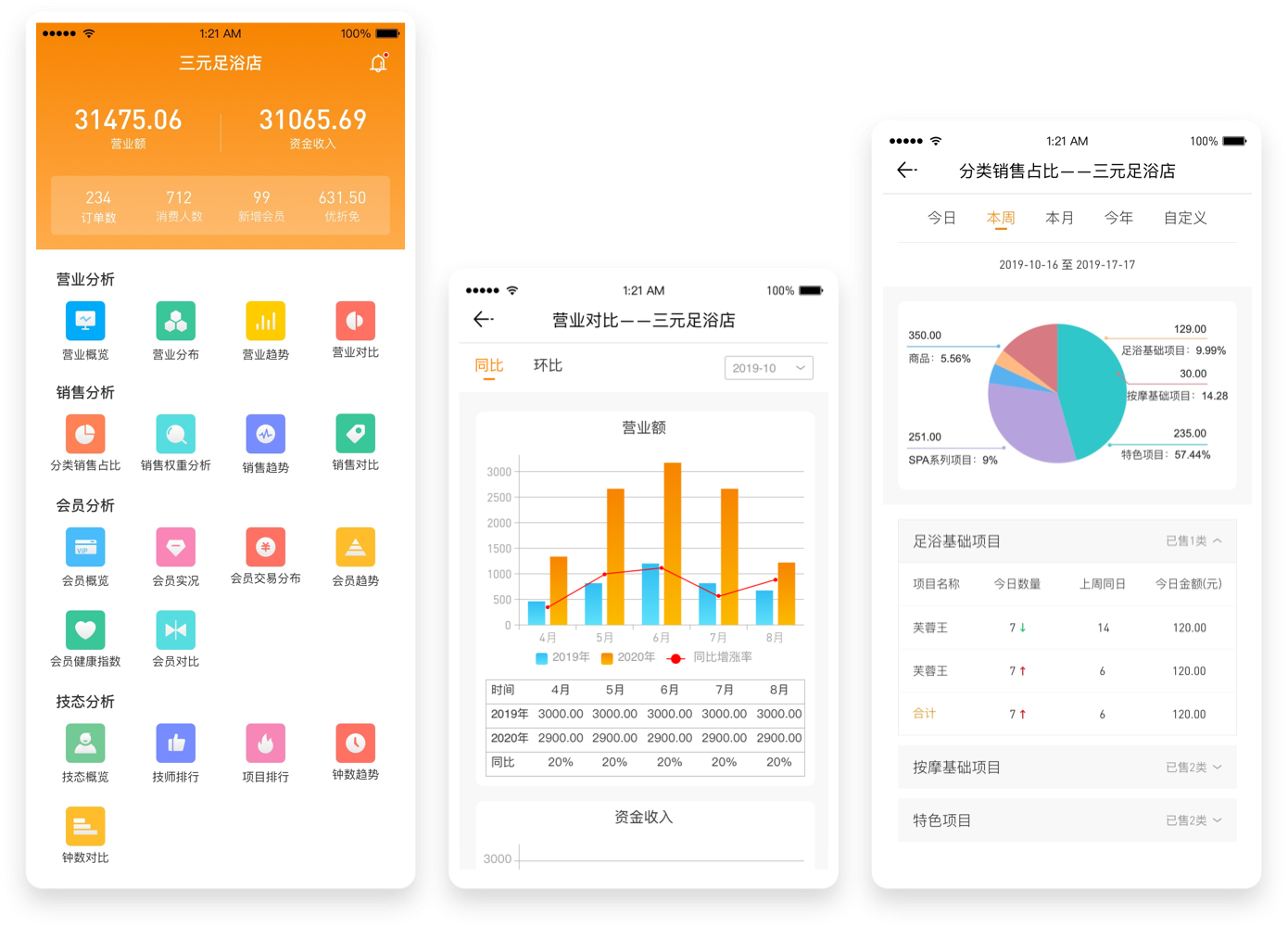 供接待、服务员、店长、老板使用,在手机上进行门店运营管理、报表分析等。