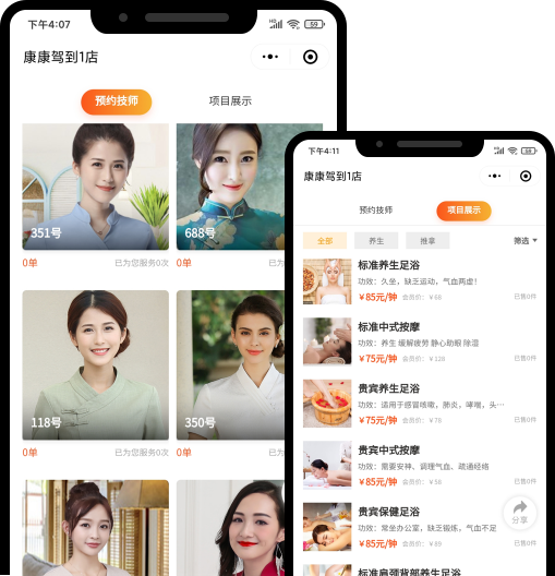 用户可以更加全面的了解技师的情况和项目内容,引导客户选择自己喜欢的技师和项目。