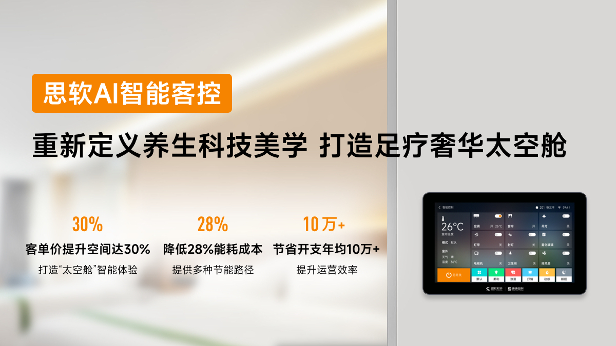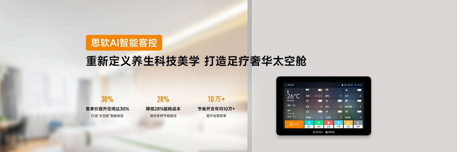 思软AI智能客控系统,是利用计算机控制、通讯、网络等技术,基于客房内的的RCU(集成网关的客房智能控制器) 构成专用的网络,可实现对足浴、洗浴行业门店客房的智能灯光、电动窗帘、中央空调、电源开关、投影/电视、背景音乐、点钟服务系统等进行智能化管理与控制,实时监测客房状态、宾客需求、服务状况以及设备情况等,协助足浴系统对客房设备及内部资源进行实时控制和分析的综合服务管理控制系统。