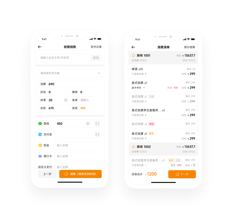 利用掌客宝,通过扫码在房间内实现支付(支持多种支付方式)